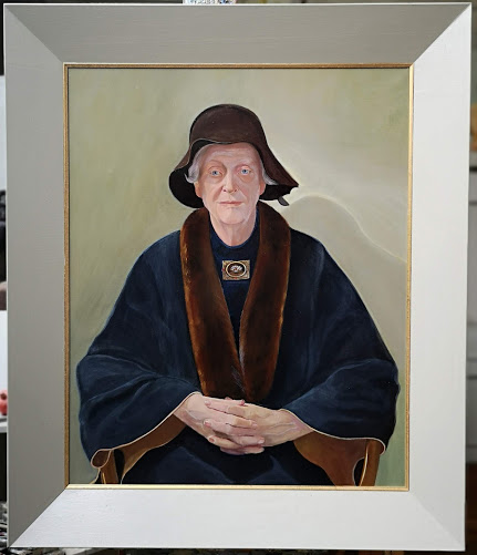 Karlsruhe 2017 "Dr. Ilse Völter mit Pelerine" 100 x 80 cm Eitempera und Öl auf Leinwand